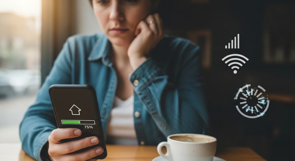 夜間アップロードはWi-Fi接続が前提となるため、Wi-Fiの電波が弱い、または接続が不安定な環境では、アップロードが遅くなったり途中で止まったりします。