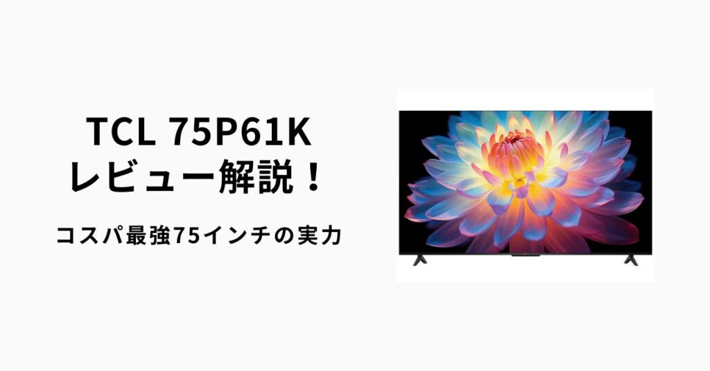 75インチという大画面テレビに憧れを抱きつつも、価格の高さから購入をためらっている方も多いのではないでしょうか。 そんな中、圧倒的なコストパフォーマンスで注目を集めているのが、TCLの4K液晶テレビ「75P61K」です。 この記事では、TCL 75P61Kの購入... -