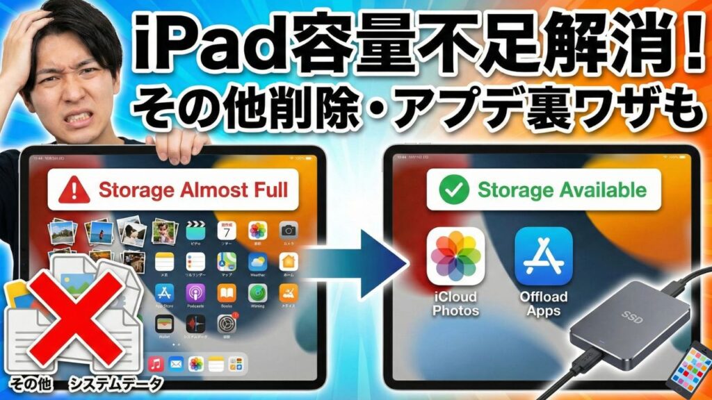 iPadを使っていると、突然「ストレージの空き容量がありません」という警告が表示され、写真が撮れなくなったりアプリがダウンロードできなくなったりすることがあります。 大切な瞬間にカメラが使えなかったり、最新のiPadOSにアップデートできずに困って... -