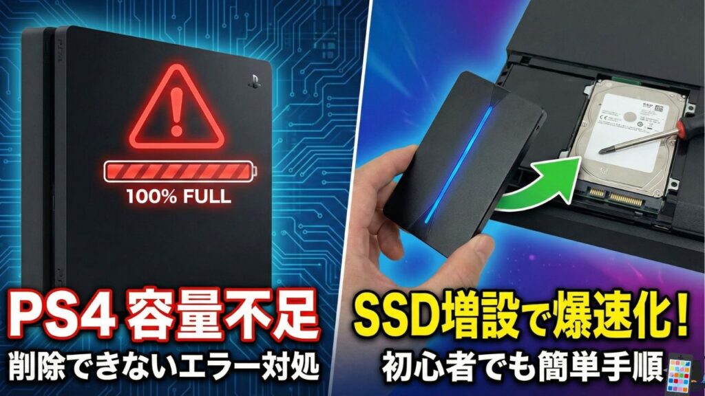 PS4容量不足を解消!削除できないエラーの対処とSSD増設手順