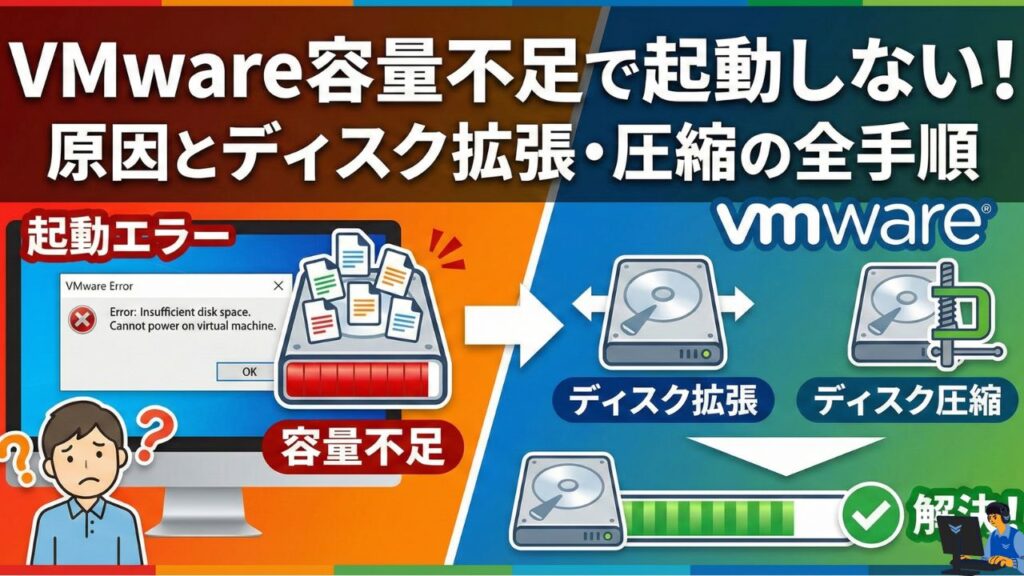 VMware容量不足で起動しない!原因とディスク拡張・圧縮の全手順