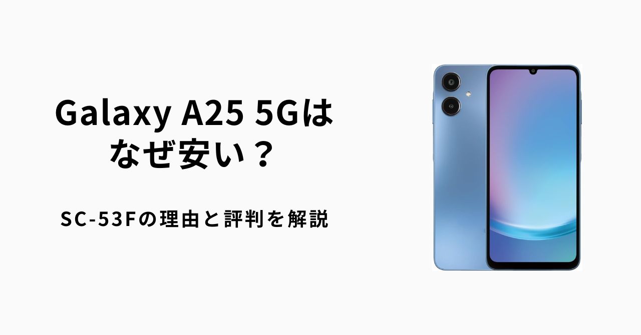 この記事では、Galaxy A25 5G (SC-53F)がなぜ安いのか、その明確な理由をスペックや背景から徹底解説します。