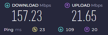 | ダウンロード | 157.23 Mbps | 134.99 Mbps | ほぼ劣化なし(超優秀) |