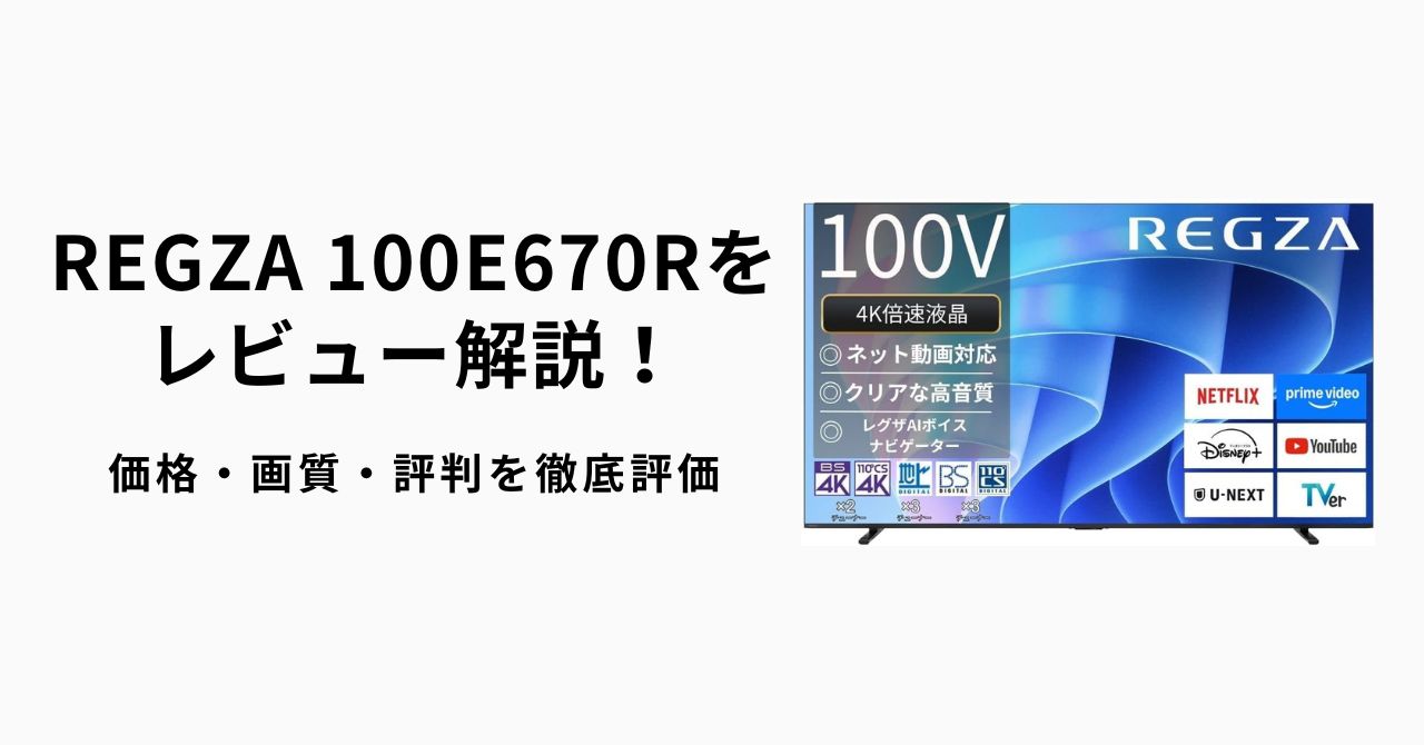 この記事では、REGZA 100E670Rのスペックや特徴、価格情報から、予想される評判・口コミまで、あらゆる情報を網羅的にレビュー解説します。