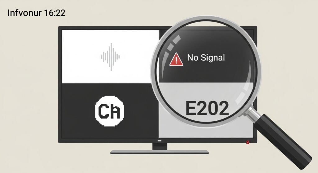 テレビ画面に「E」から始まる3桁の数字(例:E201, E202, E203)が表示される場合は、テレビがエラーの原因を特定して教えてくれています。