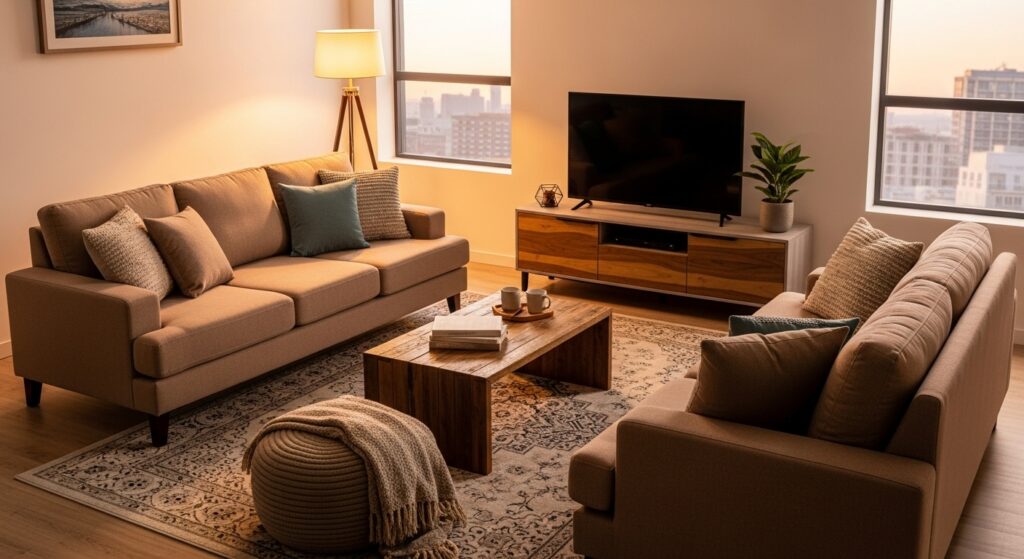 狭いリビング(6畳〜10畳):広く見せるソファの置き方とは?